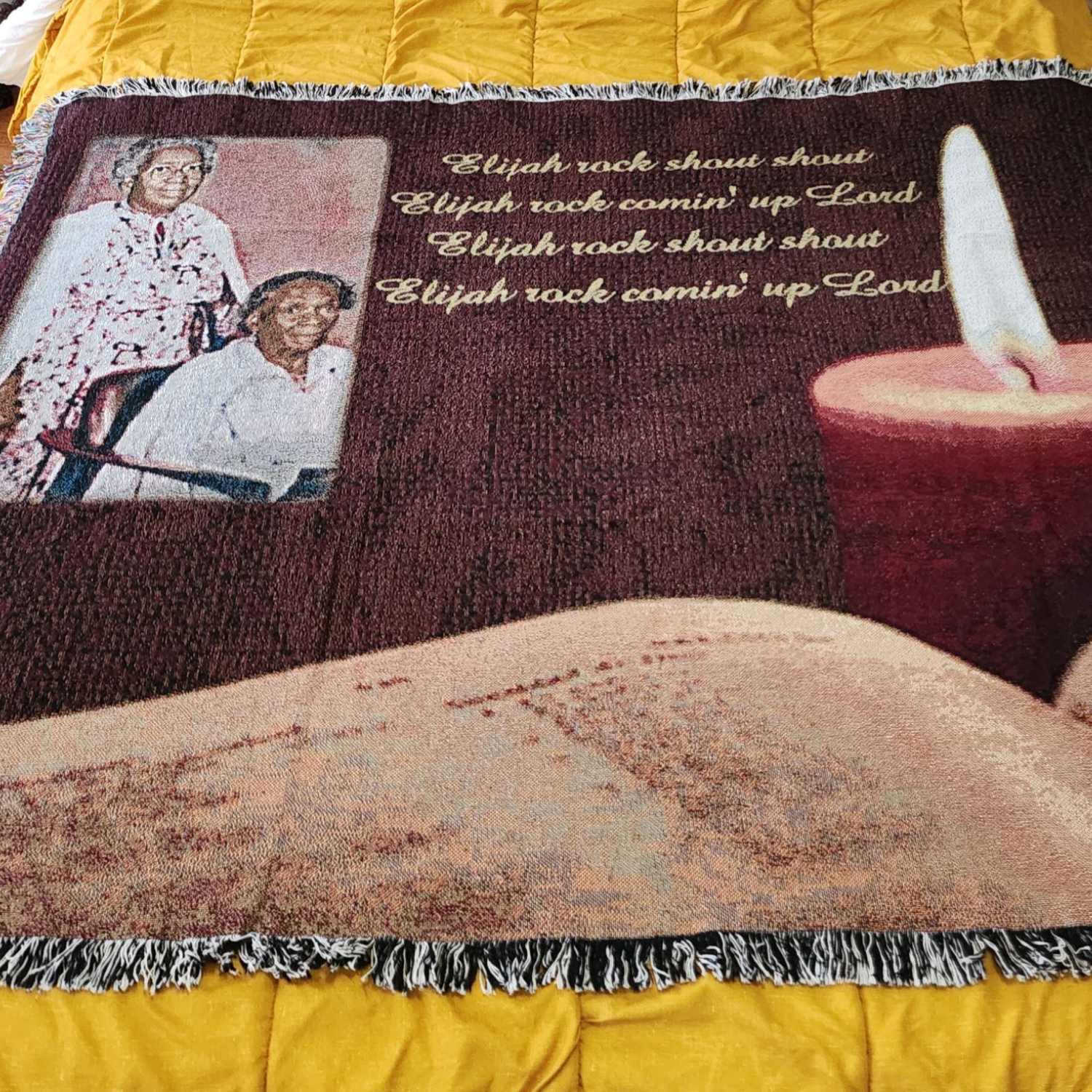It’s a comfort object. A storytelling piece. A way to stay connected through texture, memory, and presence. Each blanket requires 20 hours of preparation, lovingly handled to honor both the image and the soul it represents. Whether gifted or received, it becomes a vessel of love you can wrap yourself in — again and again.